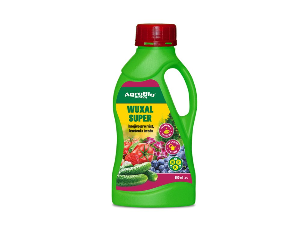 Kvapalné hnojivo WUXAL Super s nízkym obsahom chlóru na použitie v poľných plodinách, chmeli, zeleninárstve, okrasných rastlinách, ovocných drevinách, vínnej réve av škôlkach.